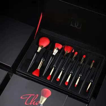 Anyone think the modeling looks like a scepter or quill pen at the first sight? The plump red bristle with strong feeling is unique and unconventional when pairing with brush head with different function, shining like a queen's crown and unforgettable. The dealing with handle can be more particular: Inverted cone on each handle makes it look like a dancing ballerina and the slender handle makes women look more sexy and beautiful. When mentioning the connection between the two---aluminum tube, is the finish touch making it more complete. There may be something wrong with it if only using outstanding red brush head together with classic understated black, while the gold color can just right brighten all the ambience. Therefore complement each other correspondingly.