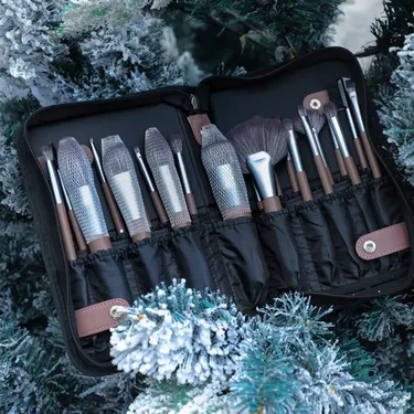With 10 pockets on the front row, this can store large brushes like foundation brushes and blush brushes; and 12 small pockets on the back row to hold small brushes like eyebrow pencils and eyeliners. It also comes with a pack of activated carbon deodorant to help this bag (made of nylon cloth, featuring wear-resistant) smells good after a few days.