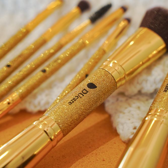 Afterglow Luxurious Gold Dual End 7-Piece Face & Eye Brush Set & Free Sponge Gift